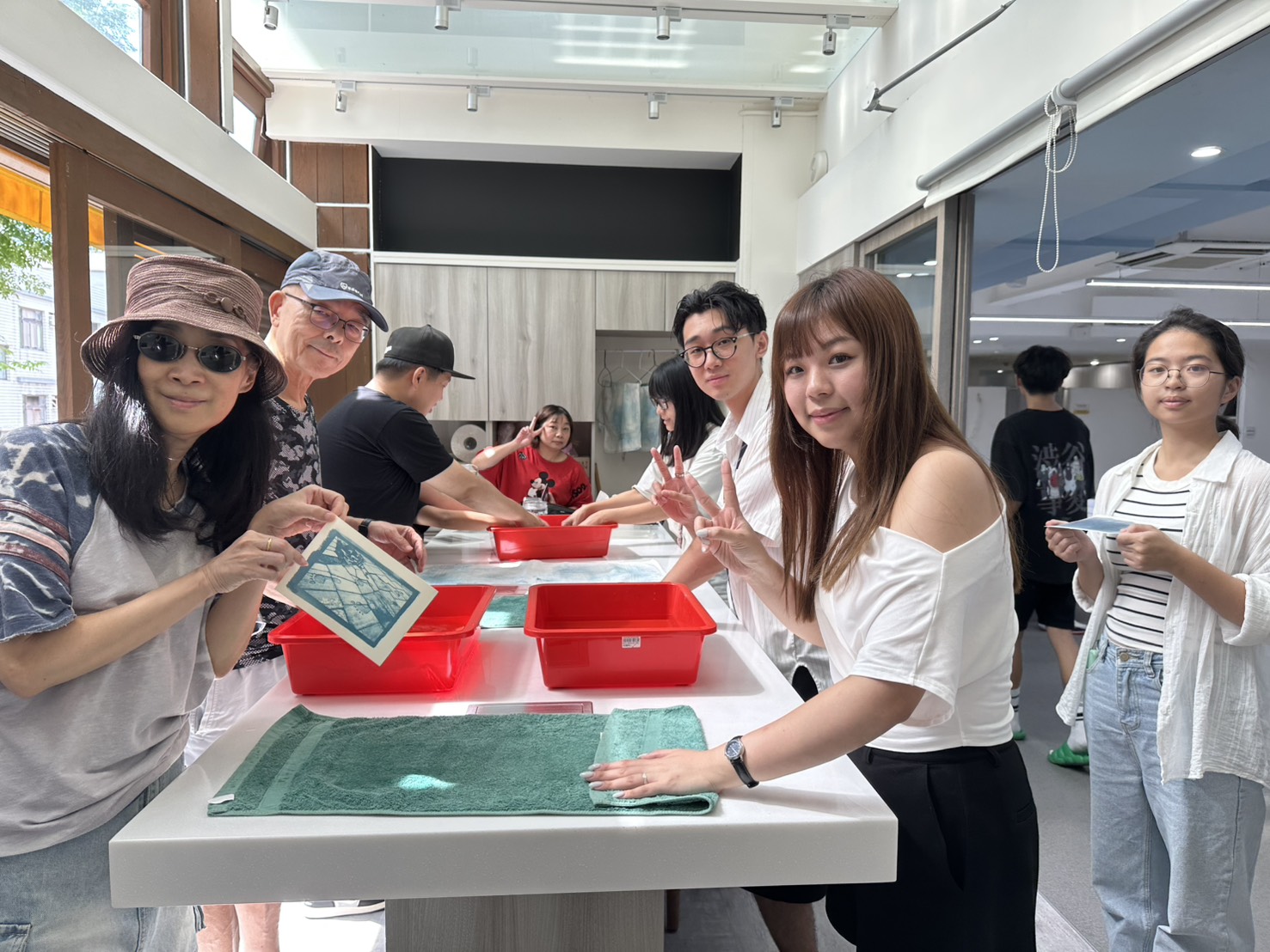 活动中,大朋友与小朋友在志工老师的带领下体验蓝晒转印。齐柏林导演空拍下的经典影像,在阳光与药剂的作用下慢慢显现,化作一张张独特的蓝色印记。这份来自影像的惊喜,不仅唤醒了人们对台湾山川之美的关注,也让孩子们的心中种下爱护土地的种子。