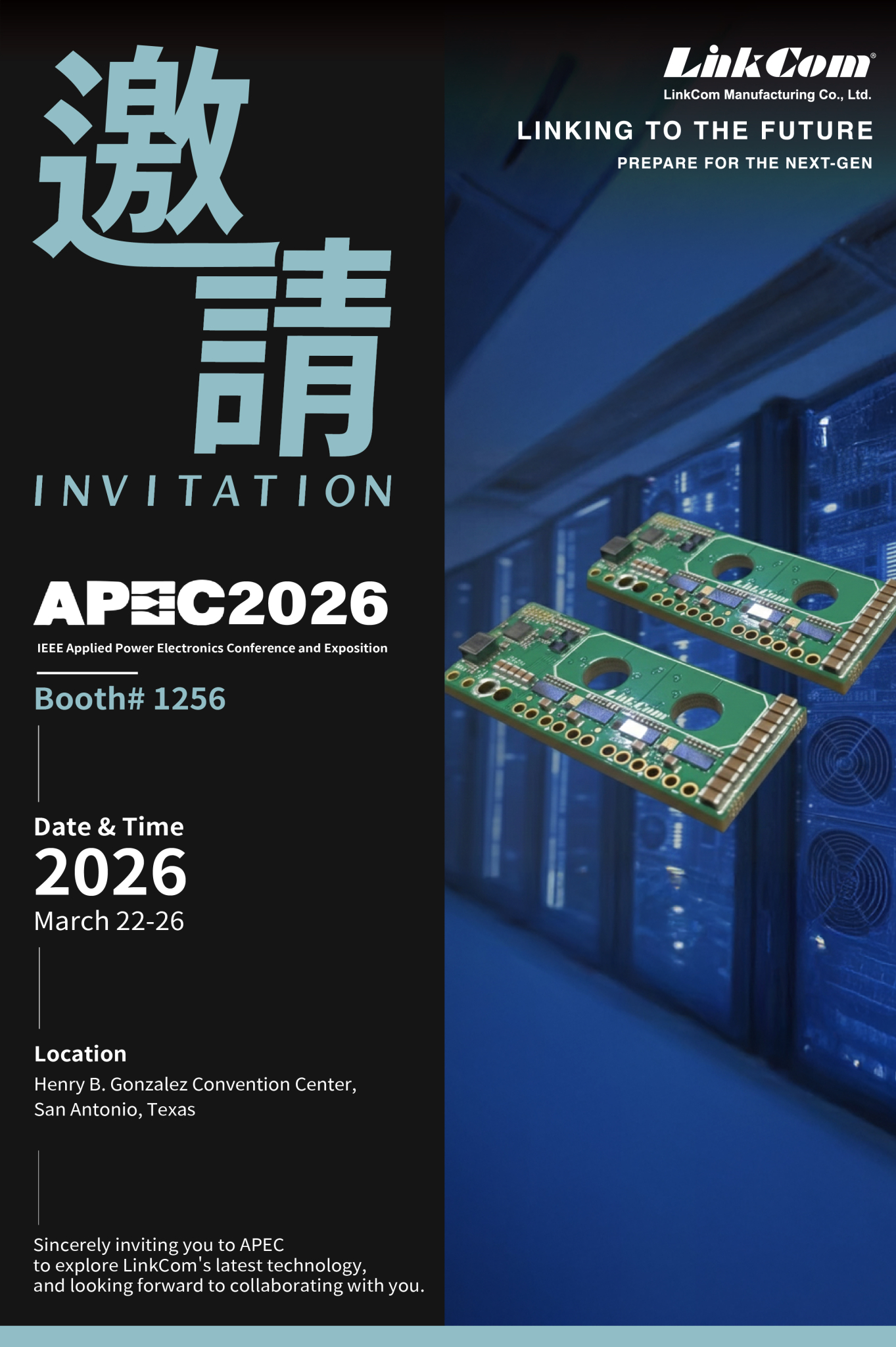 Through the international platform of APEC 2026, LinkCom aims to demonstrate its years of technological expertise and strong market insight to leading global researchers. At the same time, the company sincerely invites chip manufacturers and system integrators seeking technological breakthroughs to collaborate.